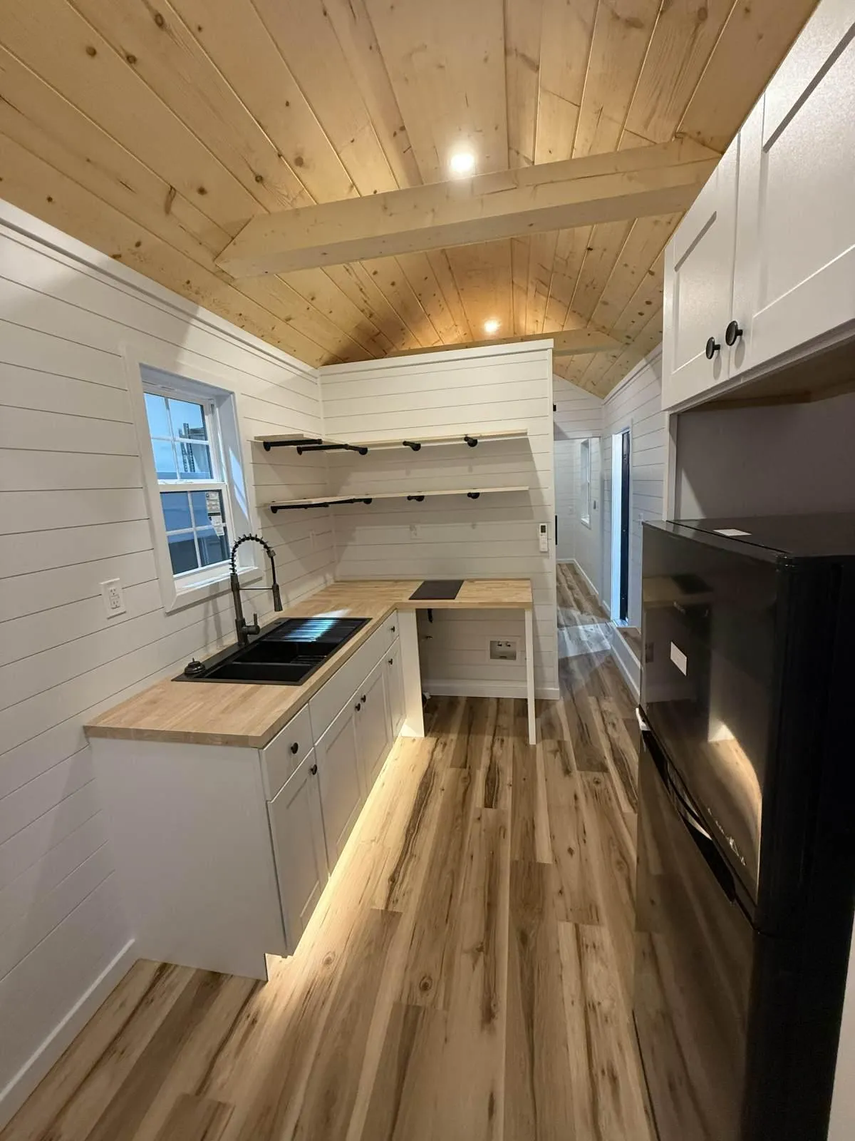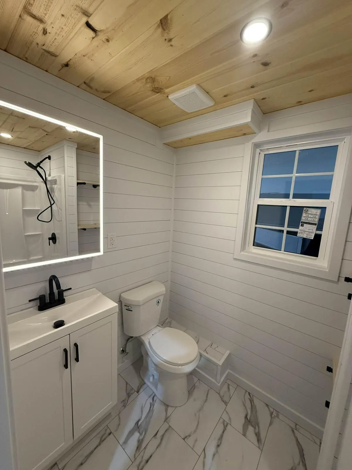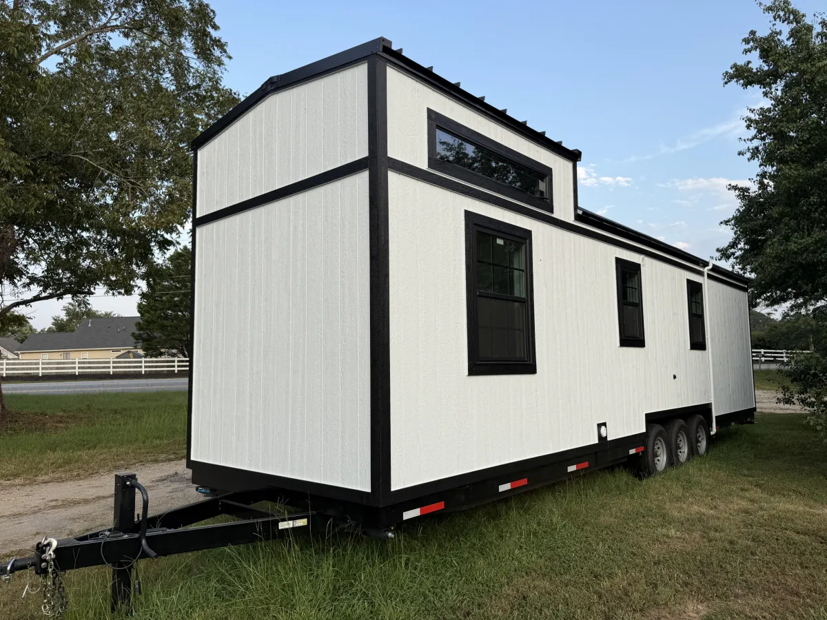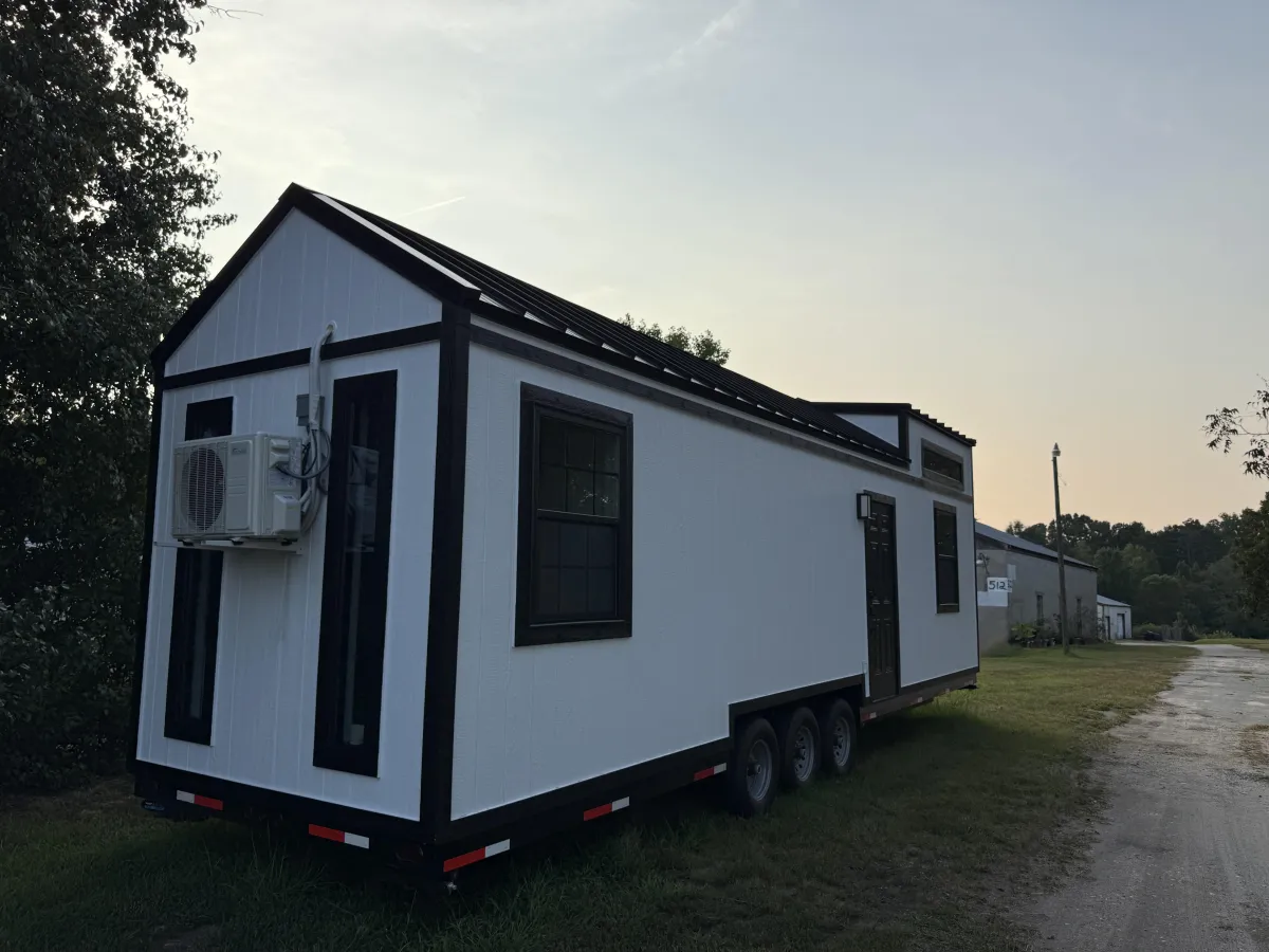 This classic tiny home is all electric and has a tried-and-true layout! Enjoy a downstairs bedroom, a double closet, and plenty of bathroom storage. The accessible shower in this home features a hand-held shower head, and a lit vanity will ensure you are always looking your best. Rest easily knowing this home was built to meet International Residential Code as per the NOAH Dwelling Standard! Located in Greenville, South Carolina.